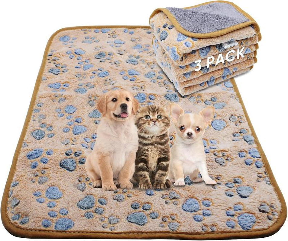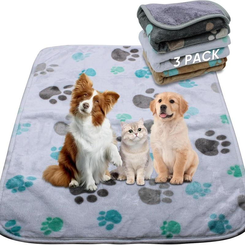 1 Pack 3 Waterproof Dog Blanket for Small Dogs, Washable Pet Blankets with Double -Sided Soft Warm Flannel Fleece, Reusable Puppy Pads for Dog Bed & Couch (M (30X20 Inch))