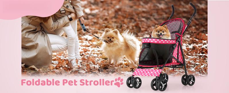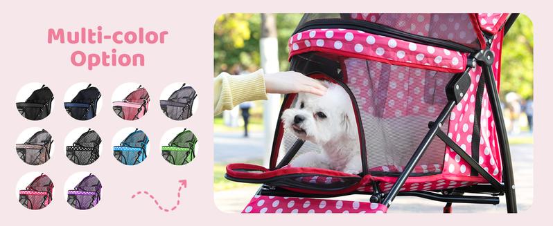 4 Wheels Pet Stroller, Easy-Fold Puppy Cage Jogger Stroller with Sun Cover, Pad and Rear Storage Bag, Breathable and Visible Mesh for Small/Medium Pets up to 22 Lbs, Black Cattravel Comfy Carrier with Washable Bed
