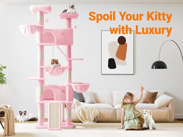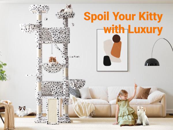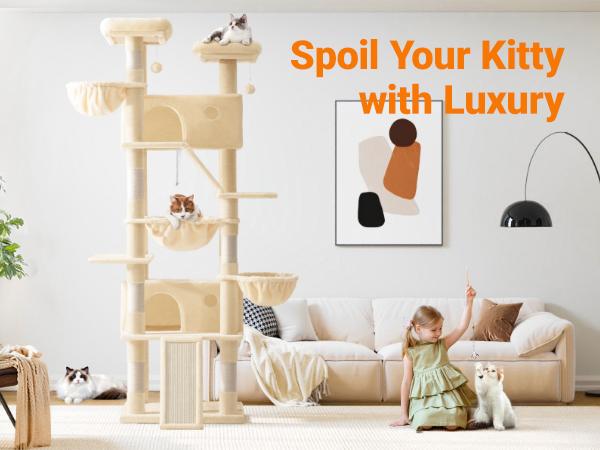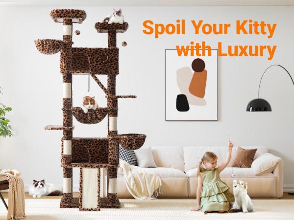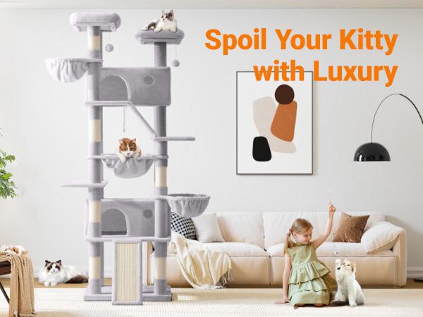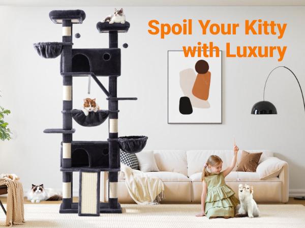 Allewie 82 Inches Tall Cat Tree/Multi-Level Large Cat Tree House and Towers for Large Cat/Cat Climbing Tree with Cat Condo and Hammock/Cat Tree Scratching Post/Wide Base#Tiktokshopbacktoschool