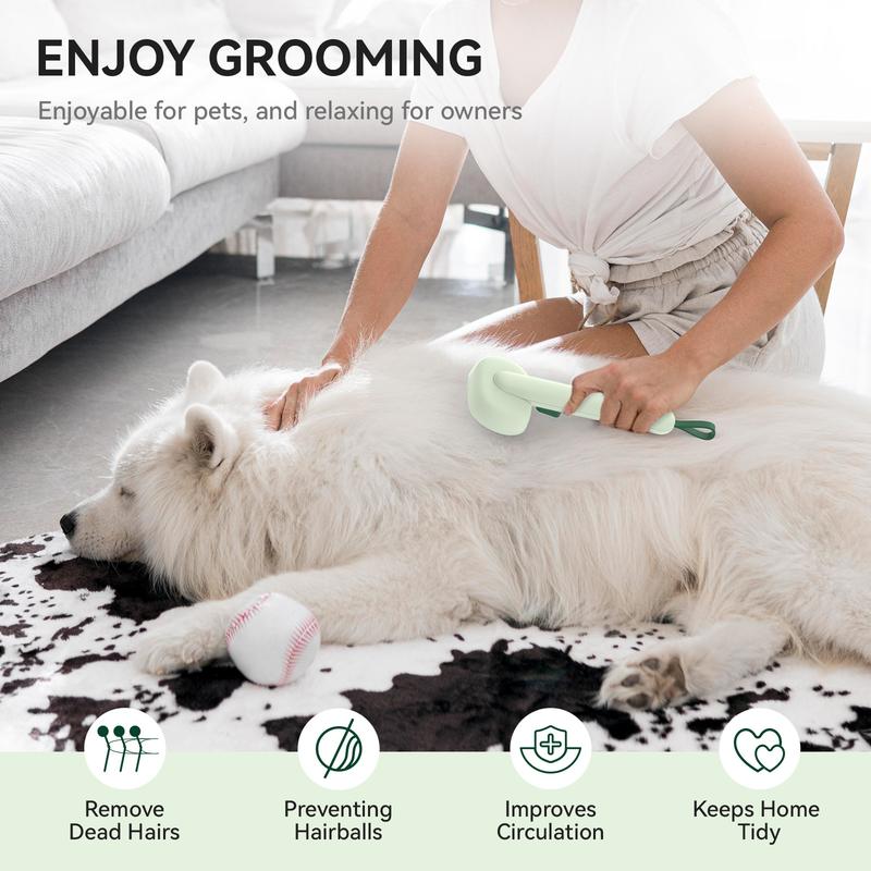 Aumuca Pet Deshedding & Massage Brush - One-Click Cleaning Tool for All Pets, Suitable for Beginners, Ideal for Grooming & Hair Removal-Light Green