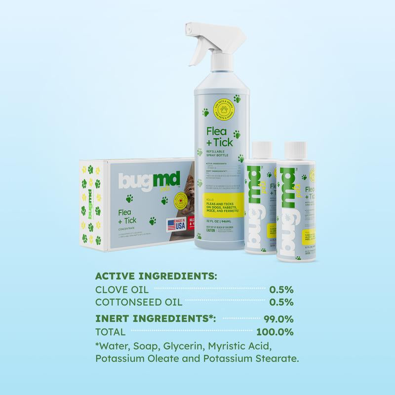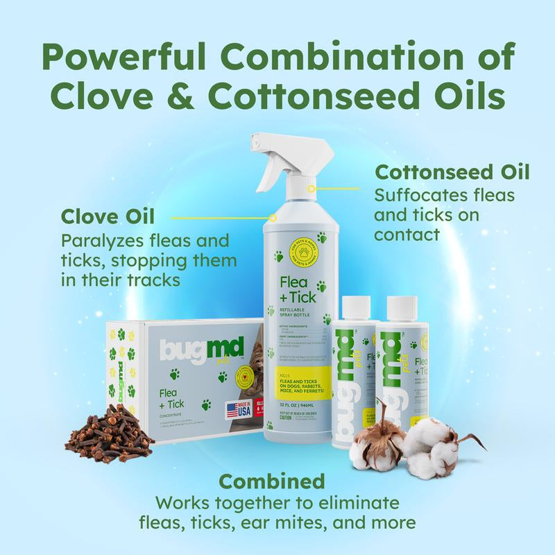 Bugmd Flea & Tick Concentrate (3.7 Oz, 2-Pack) – Plant-Based Formula for Pet Areas, Safe for Use around Dogs