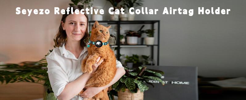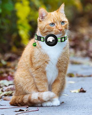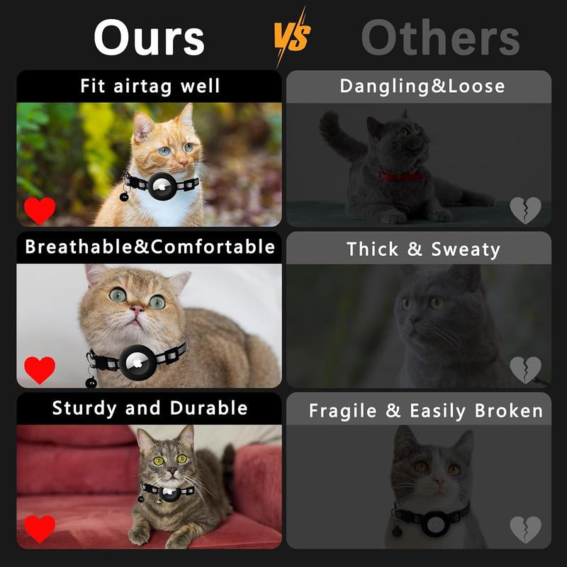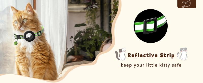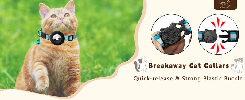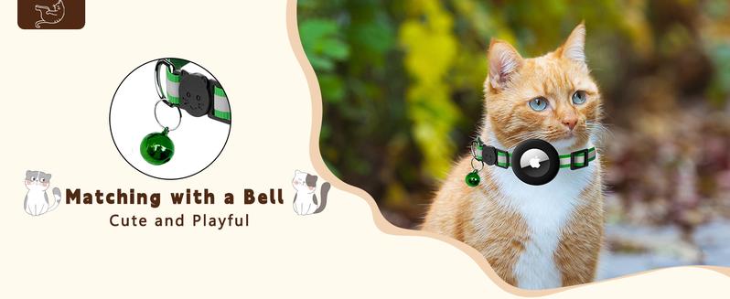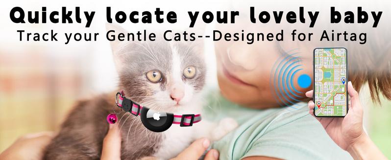 Cat Collar with Air Tag Holder, Reflective Kitten Collar with Bell, Breakaway Airtag Cat Collar for Boys Girls Cats, GPS Tracker for Cats 0.4’’ Width Adjustable Safe Kitty Collar, Black