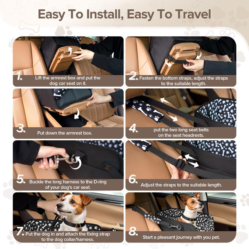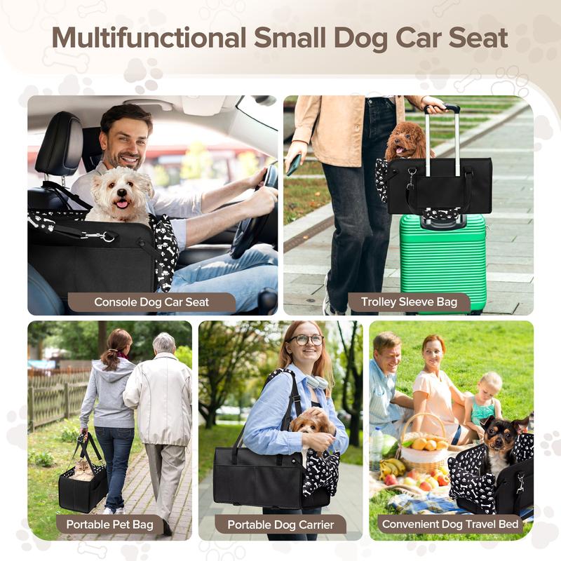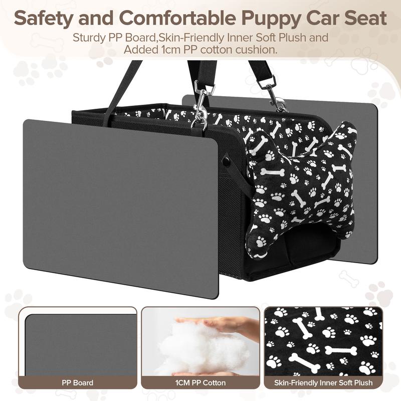 Chtoocy Dog Car Seat for Small Dogs,Center Console Detachable Washable Dog Car Seat Support up to 20Lbs,Portable Anti-Collapse Puppy Car Seat,Pet Car Seat with Soft Cushion&Safety Belt&Storage Pockets