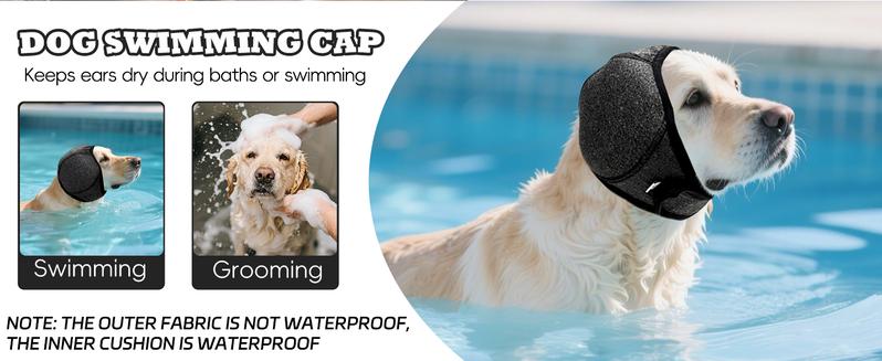 Dog Calming Hoodie Ear Wraps for Dogs, Waterproof Dogs Swim Cap, Pet Ear Cover Muffs for Anxiety Relief Noise Cancelling, Doggy Head Warp Ear Protection for Hematoma Fireworks Bath Swim Blow(Grey)