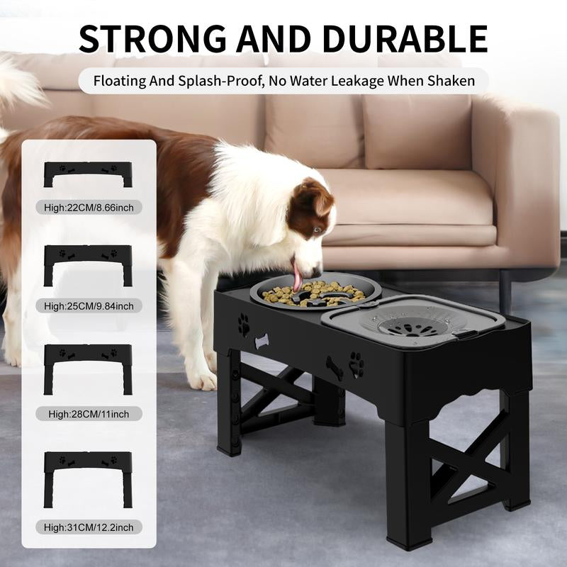 Elevated Dog Bowls, Raised Dog Bowl Stand with Slow Feeder & No Spill Water Bowl, 5 Adjustable Heights for Large Medium and Small Dogs