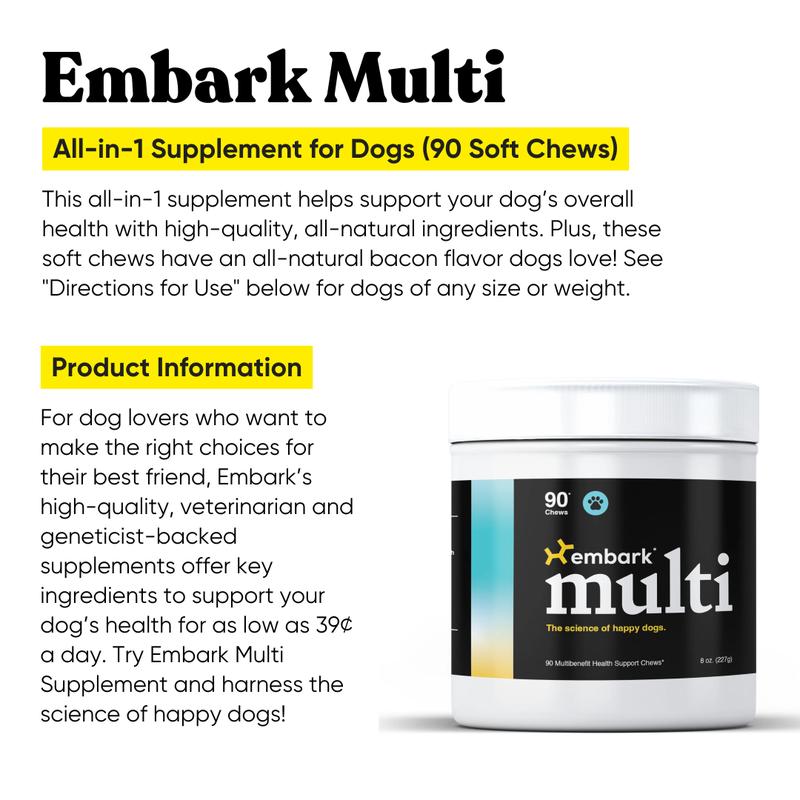 Embark Multi All-in-1 Supplement for Dogs (90 Soft Chews) This all-in-1 supplement helps support your dog’s overall health with high-quality,... Read more