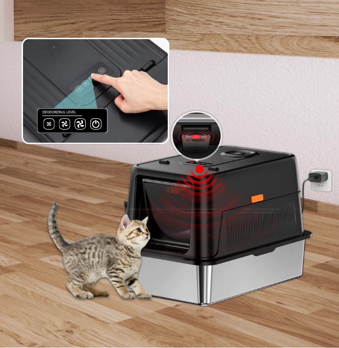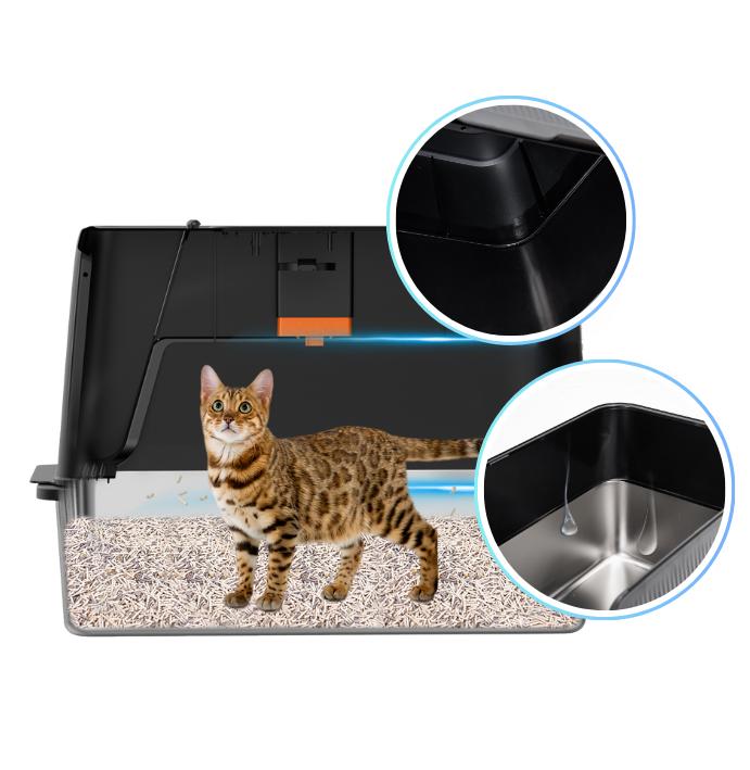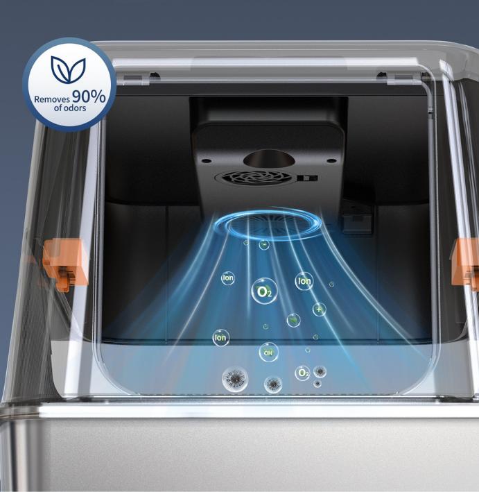 Equipped with a smart ventilation system, fresh air with rich ion releases automatically after each use, quietly eliminating odors before they generate. No more "litter box smell" lingering in your home—just set it up and let the system do the work, no extra consumables refills required.