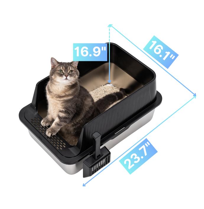 Big enough for 2+ cats or large breeds (23.7”×16.9” ×16.1”), with plenty of room to dig and turn comfortably. No crowding, no mess, more comfort.
