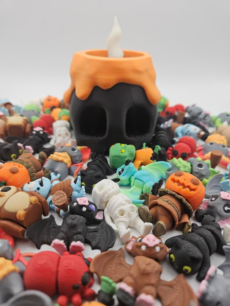 Halloween Pocket Pet Pack with 3D Printed Skull Container & 10 Random Halloween Themed Mini Pets for Desk Toys Party Favors and Classroom Gifts - Vampire