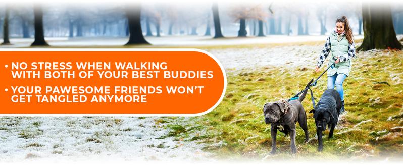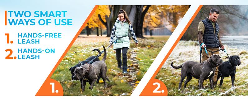 Hands Free Double Dog Leash – Dual Leash for Medium and Large Breeds – Lead for 2 Dogs with Padded Handles, Reflective Stitches, No Pull, Tangle Free