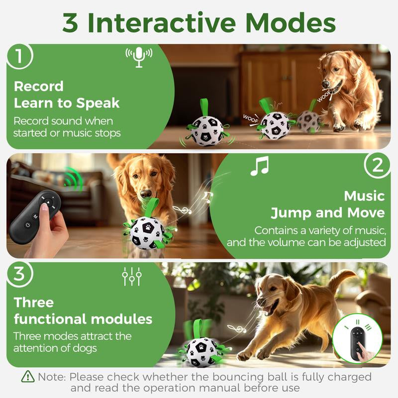 Interactive Dog Toys to Keep Them Busy, Automatic Jumping Moving Dog Balls with 66 Songs & Voice Recorder, Remote Control, Plush Soccer Ball Cover with 7 Ropes, Dog Enrichment Toys for Puppy Small Medium Dogs