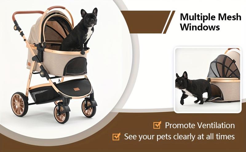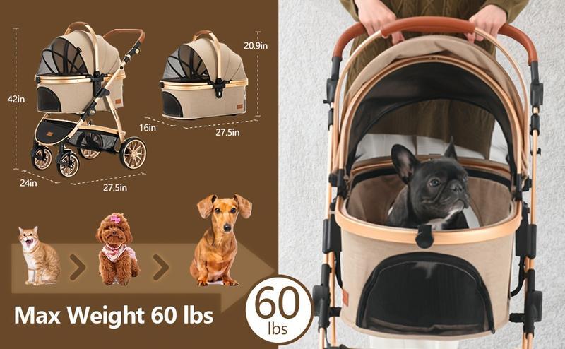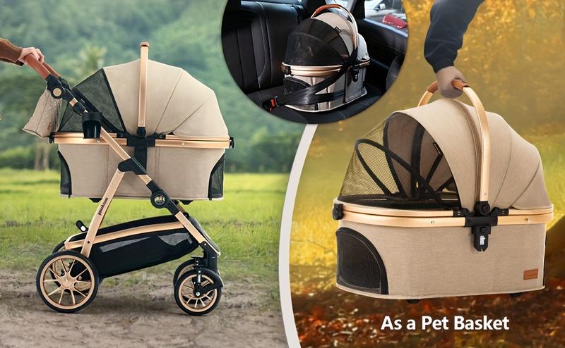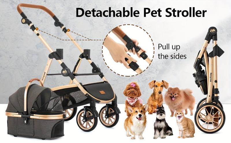 Kenyone Pet Stroller 3 in 1 for Medium Small Size Dogs Luxury Large Cat Stroller Detachable Carrier for Puppy, Kitty, Doggie
