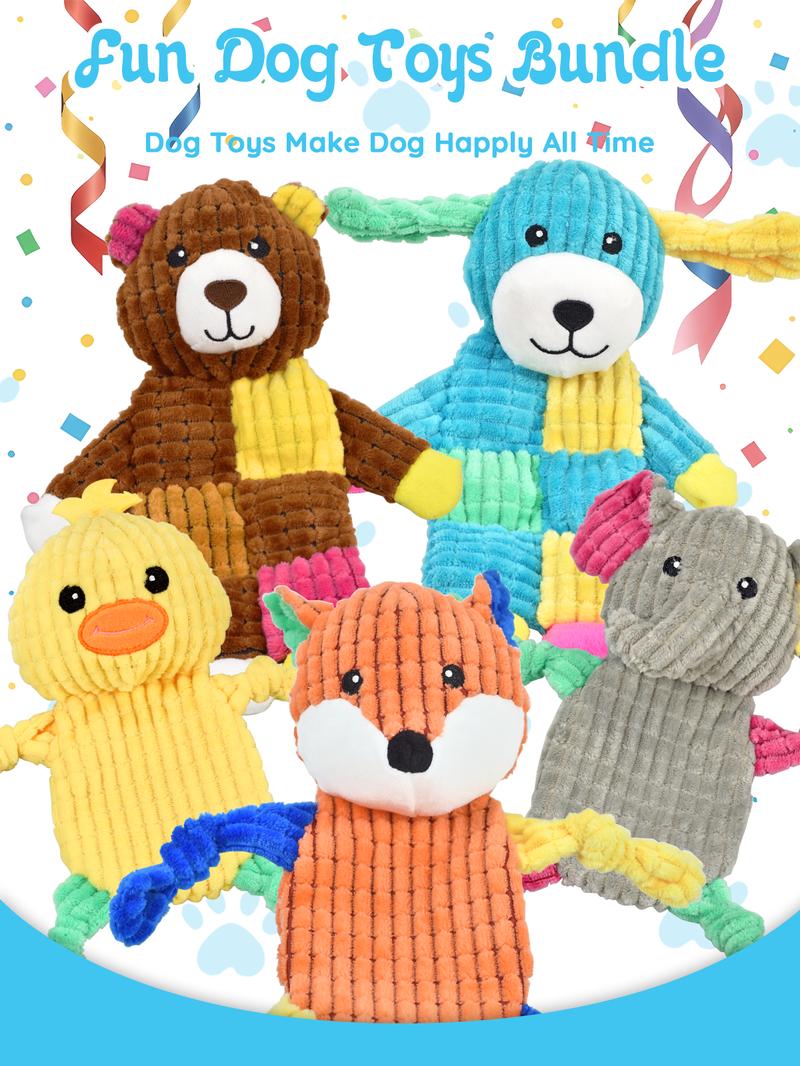 LECHONG 5Pcs Squeaky Dog Toys You will get 5 cute animals fox, bear, elephant, duck and lamb Dog Squeaky Toys... Read more