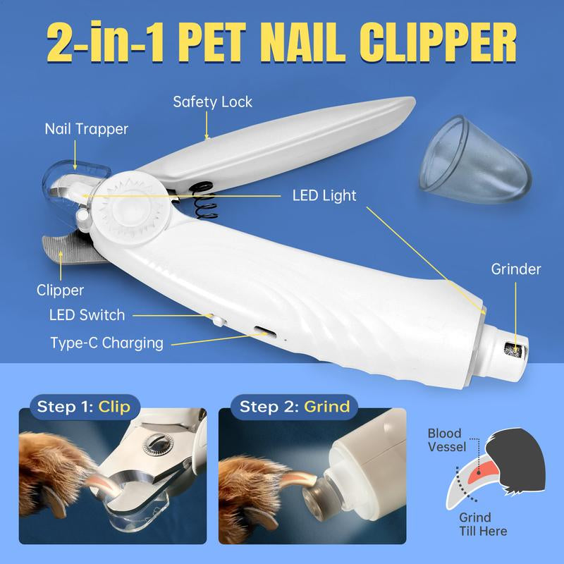 LIVEKEY 2 in 1 Dog Nail Clippers & Dog Paw Trimmer for Large Medium Small Dogs, USB Rechargeable Dog Nail Trimmers with 2 LED Light and Safe Lock Design for Dogs and Cats Petsupplies Animal