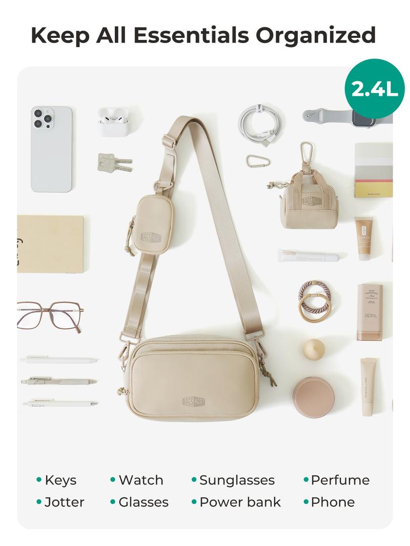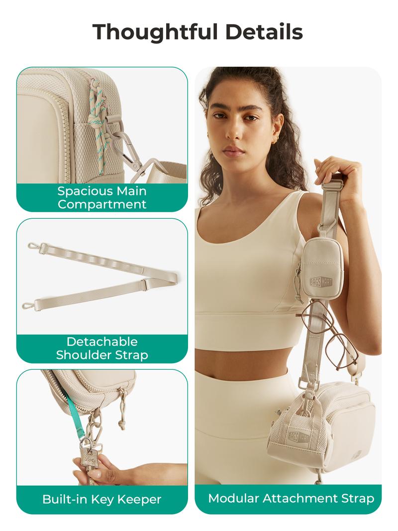 【New In】Bagsmart REIKI 2.2L Compact RFID Crossbody Bag with Detachable Mini Case & Key Leash Machine Washable for Workouts and City Walks Fallfreshness