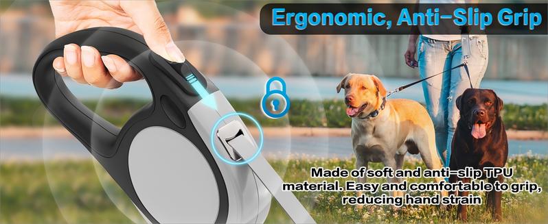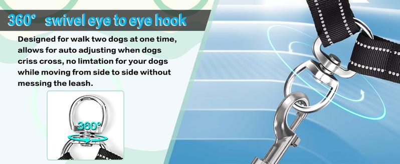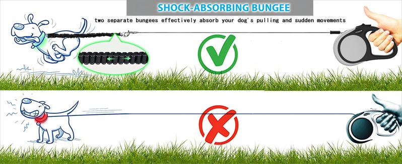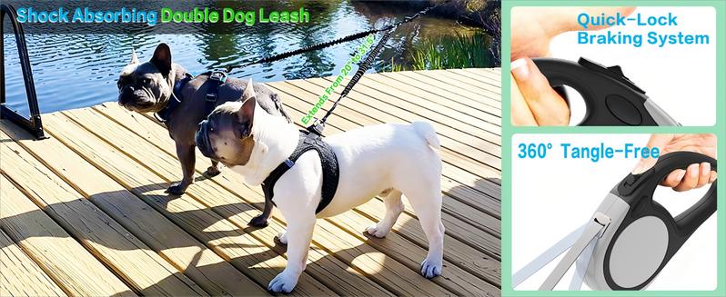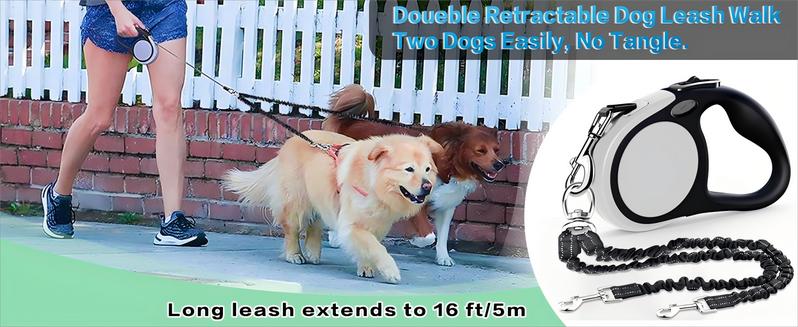 No-Tangle Dual Retractable Dog Leash for 2 Dogs (Up to 100 Lbs, 16 Ft) – Elastic Bungee for Safer Walks, 360° Swivel, Non-Slip Grip