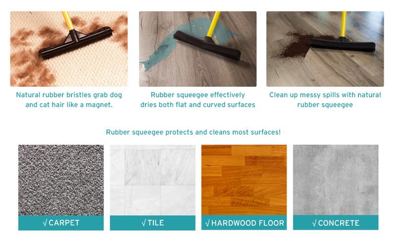 Original Pet Hair Rubber Broom with Squeegee, with 58 "Telescopic Handle for Carpet, Tile and Hardwood