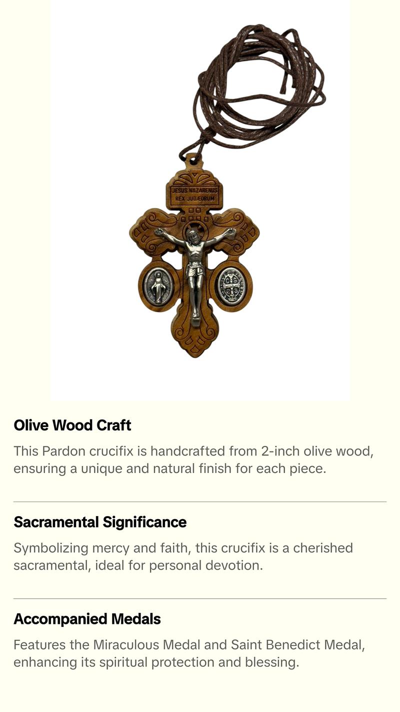 The Pardon crucifix, carefully crafted from 2-inch olive wood, is a sacramental that symbolizes mercy and faith. Named as such... Read more