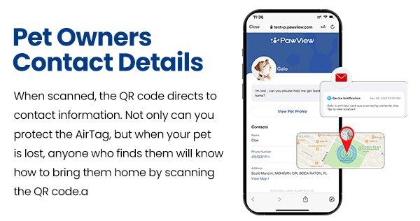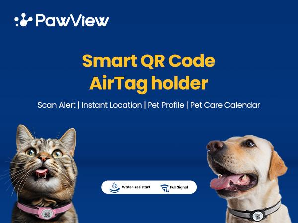 Pawview Airtag Dog Collar Holder, Smart QR Code Airtag Holder for Cats and Dogs, Instant Location, Scan Alert, Pet Profile, Contacts Info, APP Control