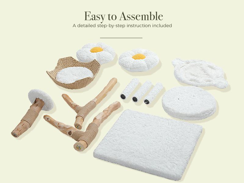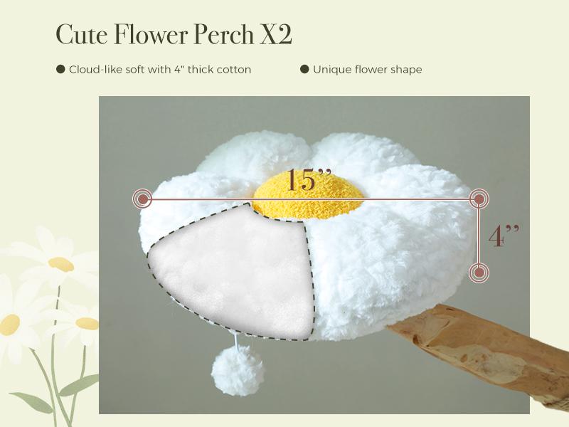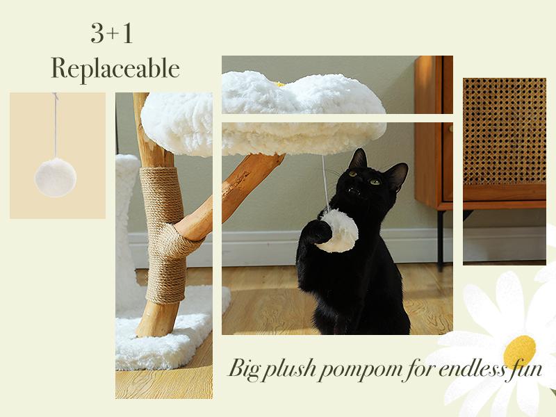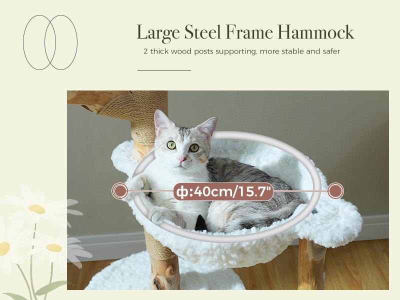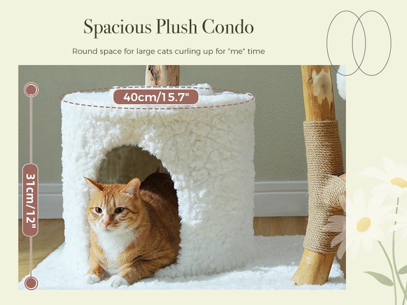 PAWZ Road 59-Inch Modern Luxury Wood Cat Tree, Natural Wood, Condo& Hammock, Flower Design for Indoor Cats, White