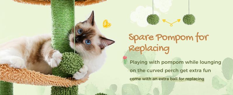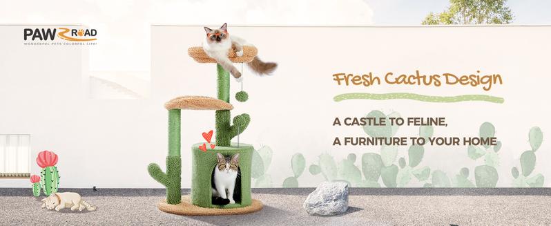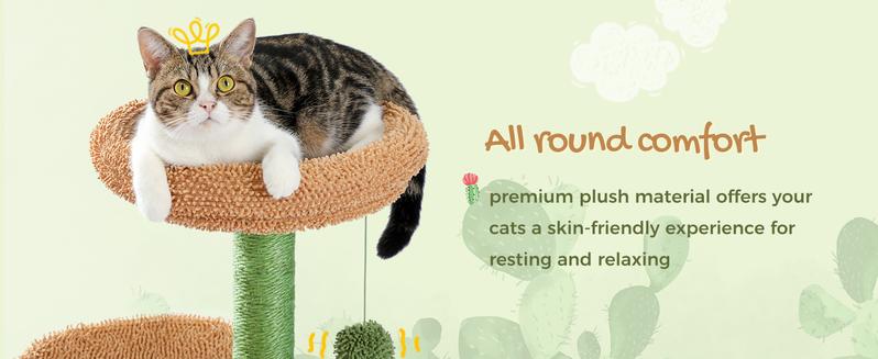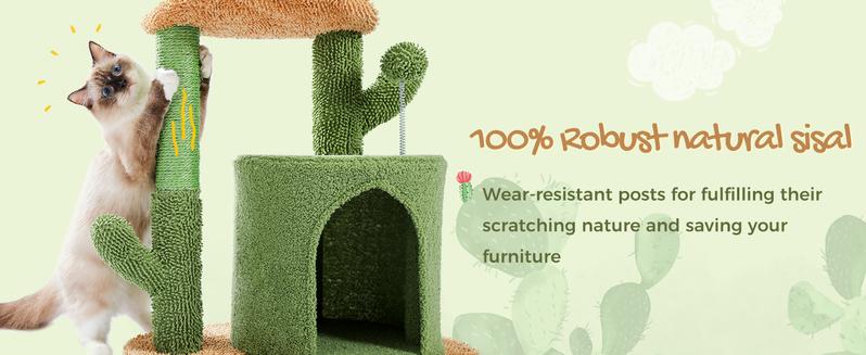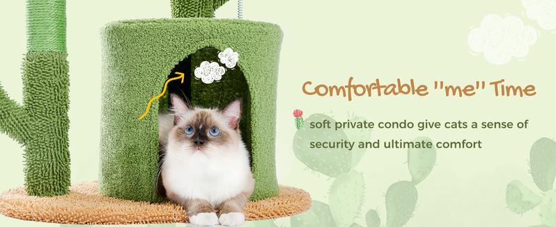 PAWZ Road Cat Tree 32-Inch Cactus Cat Tower with Sisal Covered Scratching Post, Cozy Condo, Plush Perches and Fluffy Balls for Indoor Cats