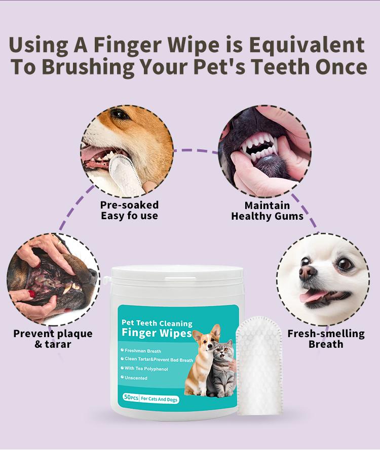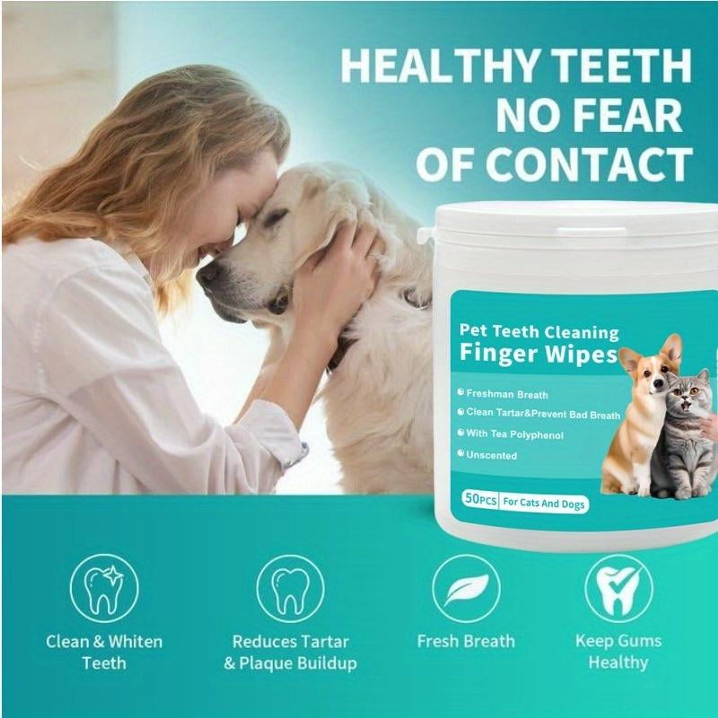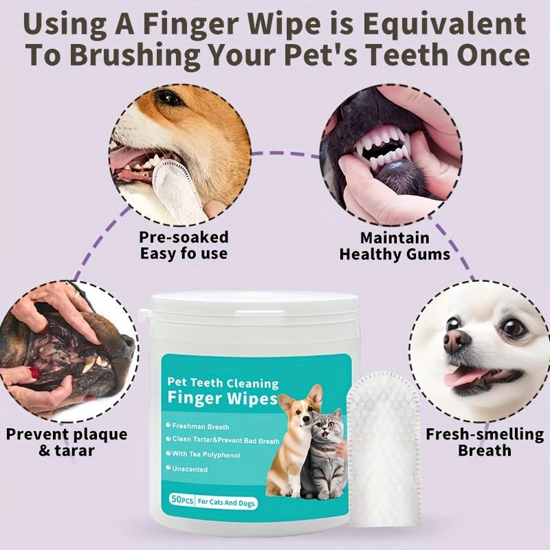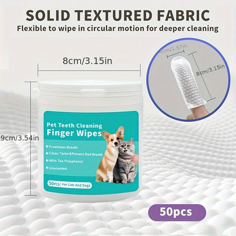 Pet Dental Cleaning Finger Wipes for Dogs & Cats - 50 Pcs, Safe Formula with Tea Polyphenol, Unscented, Fresh Breath, Oral Care Wipes Grooming Cleaner Toothbrush