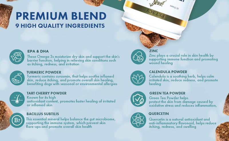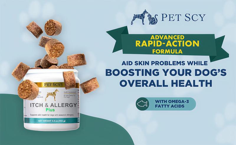 We know how heartbreaking it is to watch your dog constantly scratching, licking, or chewing. That’s why we created PetScy Itch & Allergy Plus+, a bacon-flavored chew packed with 9 premium ingredients proven to calm itchy skin, relieve seasonal allergies, and boost your dog’s overall health.