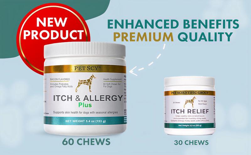 Don’t let your pup suffer another itchy day. Grab PetScy Itch & Allergy Plus+ today and watch the scratching stop!
