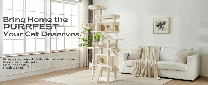 Purrfest 80 Inch Tall Cat Tree Tower for Indoor Cats/Large Cat Tree with Hammock, Scratching Posts & Perches/Big Multi-Level Cat Tower for Large Adult Cats