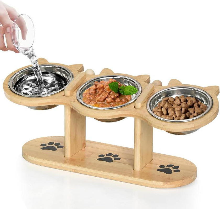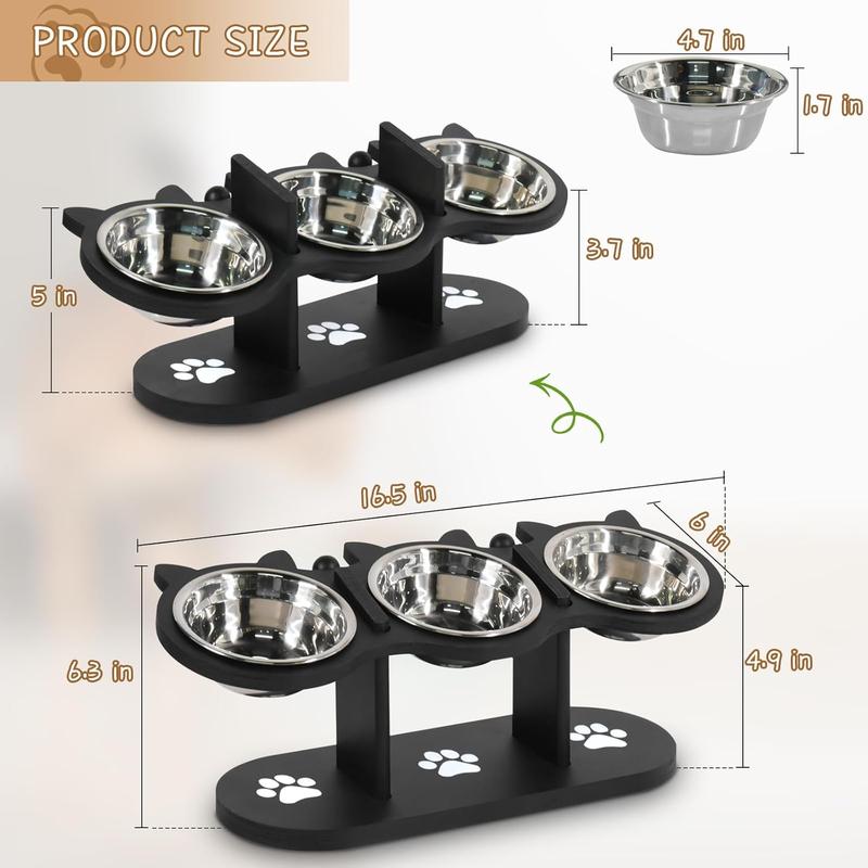 Raised Cat Food Bowls for Indoor Cats, Elevated Cat Bowls,Adjustable Heights Pet Bowl with Black Shelf,3 Stainless Steel Elevated Cat Bowls Stand with 15 ° Tilted,Cat Food and Water Bowl Setcat Food Bowl Slow Feeder Bowl