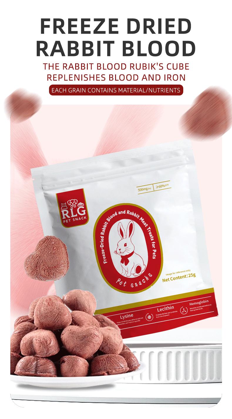 RLG 15 Individually Wrapped Freeze-Dried Rabbit Blood Treats – Rich in Hemoglobin & Iron – Supports Energy & Vitality – 25G Bag
