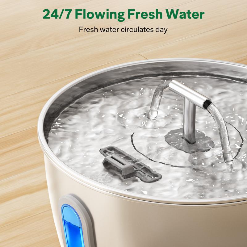 Round One Cat Water Fountain Stainless Steel - 3.2L/108Oz Pet Water Fountain for Cats Indoor - Automatic Pet Watering Dispenser (1 Filter)
