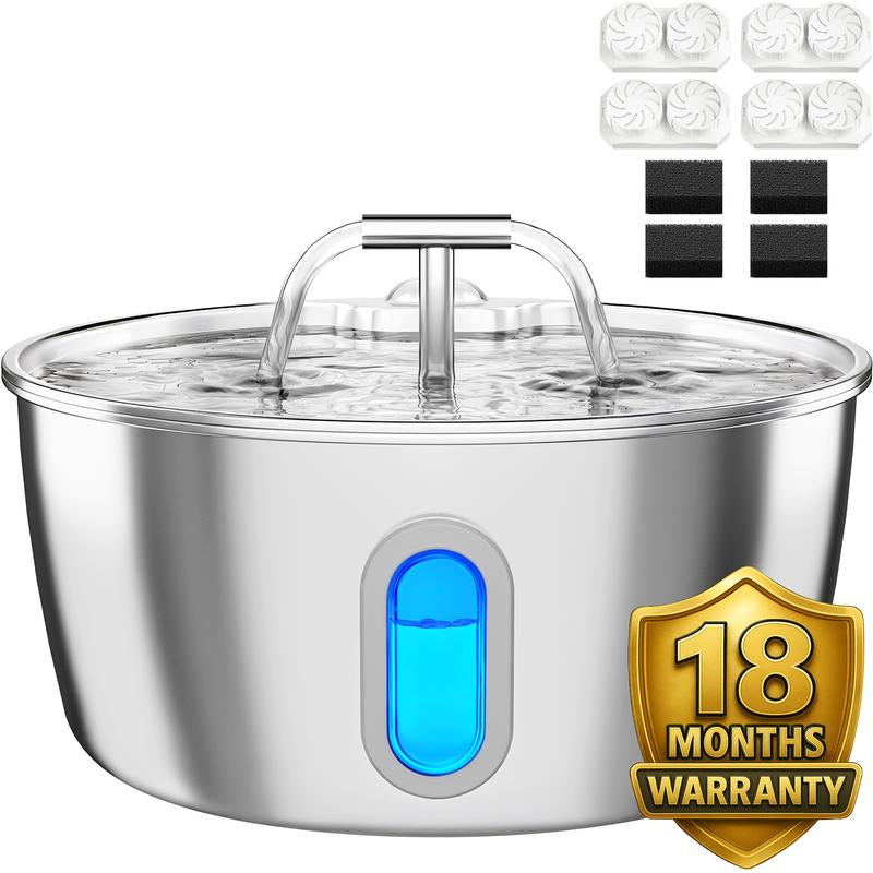 š± Round One Cat Water Fountain Stainless Steel - 3.2L/108oz Monitor water levels easily with the visible window! This pet... Read more