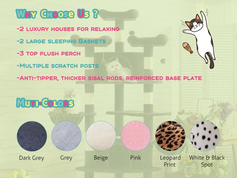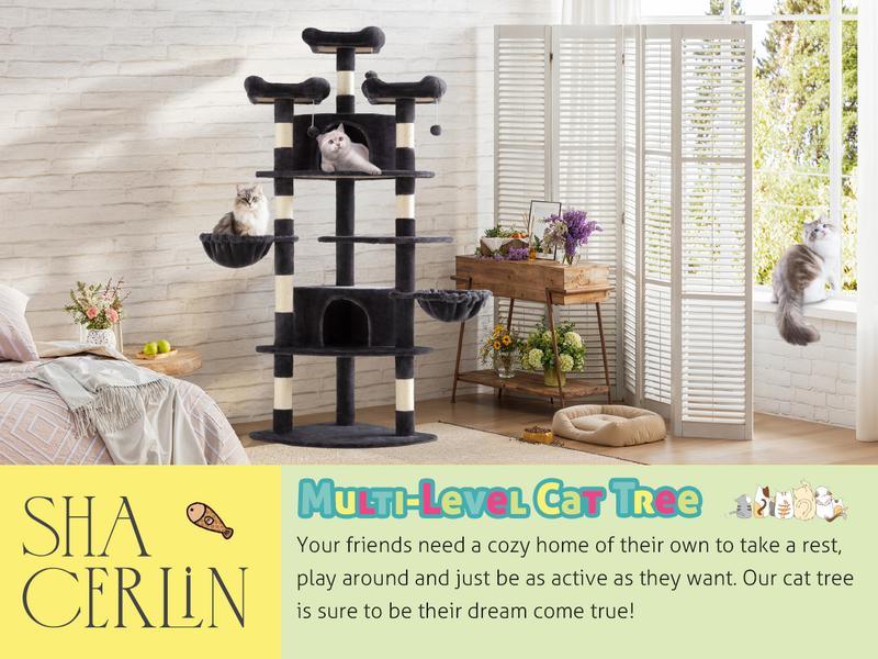 SHA CERLIN 73-Inch Fan-Shaped Corner Cat Tree for Indoor Cats -Save Space with Multi-Level Perches, Condo, Sisal Scratching Posts (Blue/Gray/Beige/Pink/Leopard/White&Black Spot)#Tiktokshopbacktoschool
