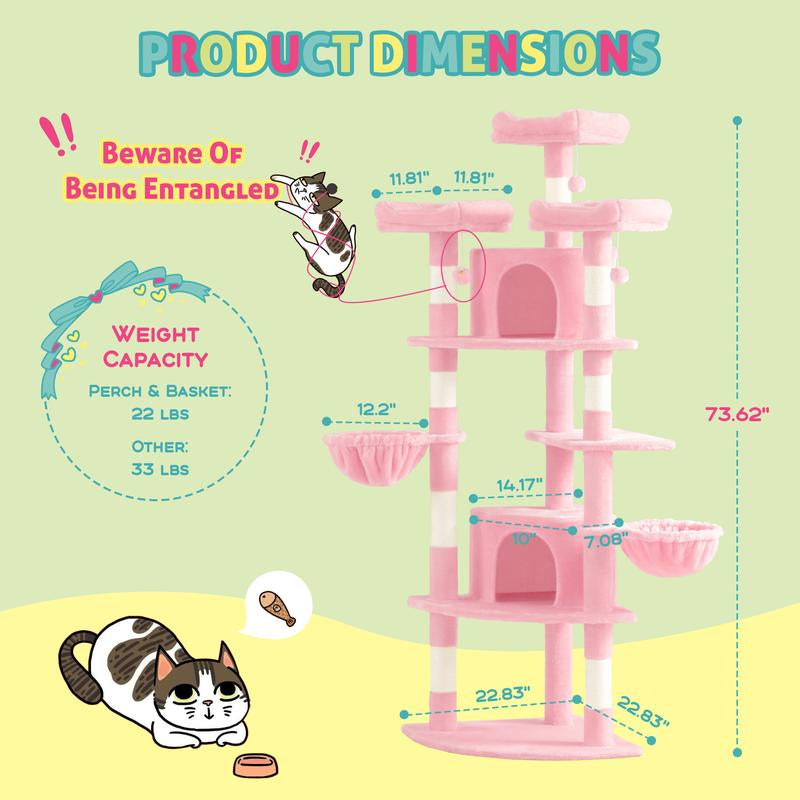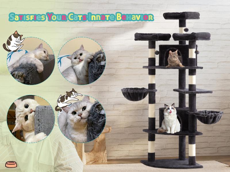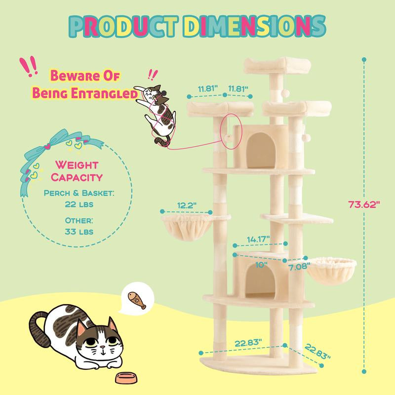 Space-Saving Corner Design: At 73 inches tall with a 90° fan-shaped layout, this cat tree fits snugly in corners, maximizing... Read more