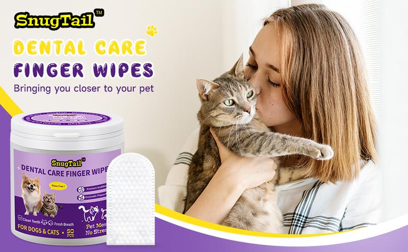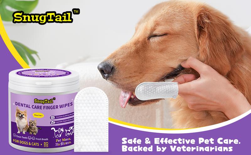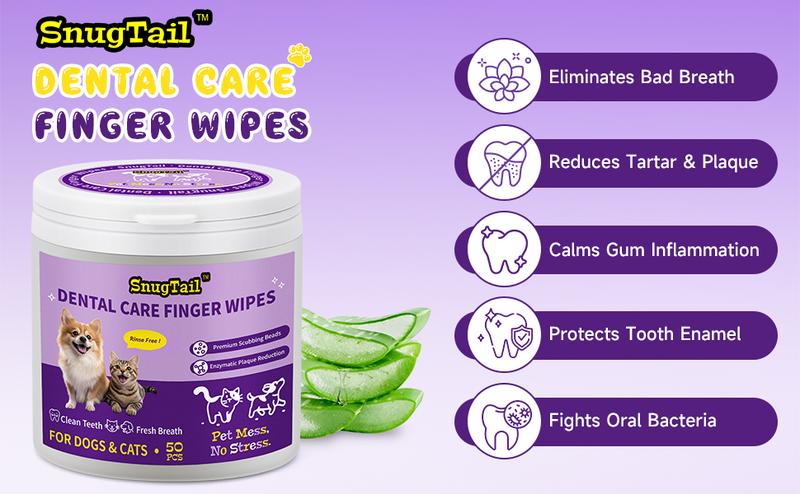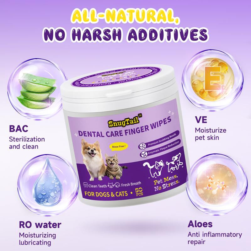 Snugtail Dog Teeth Cleaning Wipes for Bad Breath – 50 Pcs,Dental Wipes for Dogs & Cats to Remove Plaque, Tartar & Freshen Breath,No-Rinse Toothpaste Alternative,Gentle Gum Care for Puppy, Adult & Senior Pets