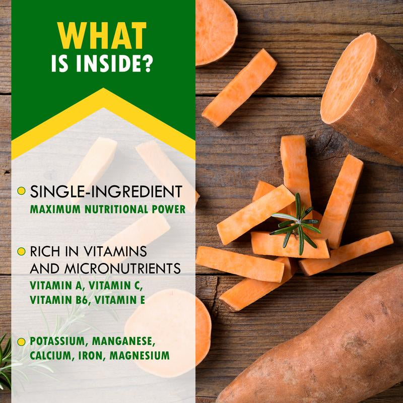 All-natural, grain-free dog treat: Crafted from premium sweet potatoes, these treats are grain-free, corn-free, and easily digestible, making them ideal for dogs with sensitive stomachs. Conveniently packaged for on-the-go snacking, they’re perfect for adventures and outdoor fun with your dog.