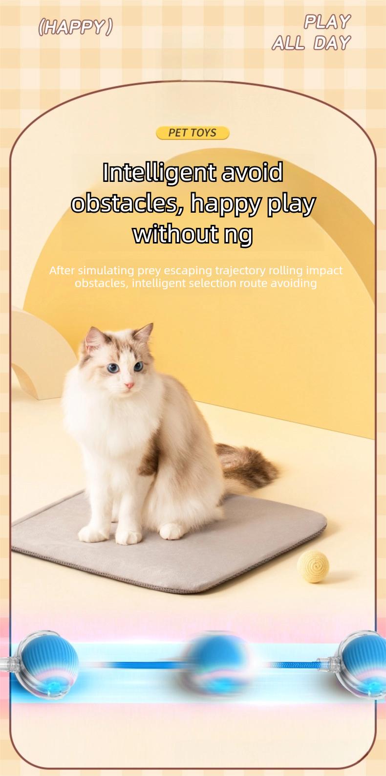 Upgraded Version 2025 Intelligent Interactive Electric Cat Toy Ball Indoor - Automatic Wake-Up Function, Automatic Rolling, Super Avoiding Sensitive Obstacles, Releasing Unlimited Cat Entertainment (Blue)